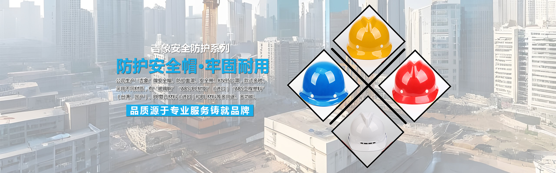 本公司生產的“吉象”牌安全帽、防護面罩、安全帶、KN95口罩,款式多種、采用不同材質,有“玻璃鋼”“ABS/PC樹脂”(進口)“ABS工程塑料”(臺灣、國產)、PP復合材料(進口)和PE 材料等多用途、多功能。并以安全性、舒適性和人性化為基礎。