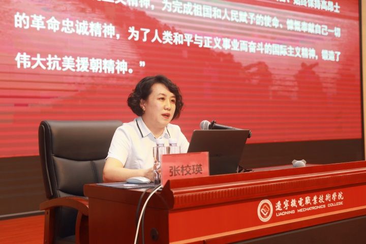 活動邀請遼寧省國防教育講師團成員、抗美援朝紀念館副館長張校瑛作“依托抗美援朝紅色資源 傳承偉大抗美援朝精神”專題講座。張校瑛從朝鮮內(nèi)戰(zhàn)爆發(fā)的原因、中共中央決策出兵的背景、抗美援朝戰(zhàn)爭的基本過程、抗美援朝戰(zhàn)爭的偉大勝利、抗美援朝戰(zhàn)爭的意義和影響等方面對抗美援朝戰(zhàn)爭進行了深入淺出的講解,為師生們帶來了一堂難忘的國防教育思政課。