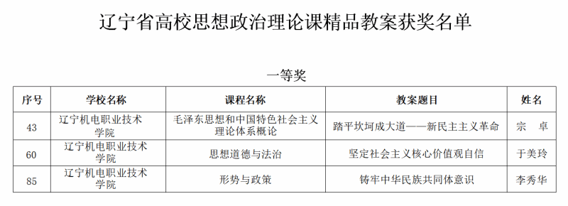 近日,遼寧省教育廳對2024年遼寧省高校思想政治理論課精品教案評選結果進行公布。我校馬克思主義學院教師榮獲一等獎3項,二等獎3項,三等獎1項。