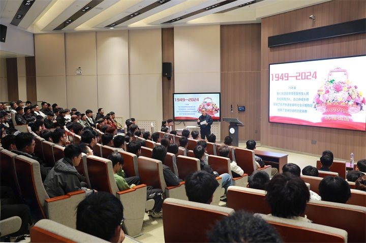 段振云全面梳理了新中國成立75周年來取得的偉大成就,從綜合國力和國際影響力實現(xiàn)歷史性跨越、經(jīng)濟結(jié)構(gòu)發(fā)生歷史性變革、對外開放成就舉世矚目、創(chuàng)新型國家建設(shè)成果豐碩、人民群眾獲得感幸福感安全感大幅提升、生態(tài)文明建設(shè)發(fā)生歷史性轉(zhuǎn)折性全局性變化等六個方面列舉了我國經(jīng)濟社會發(fā)展取得的巨大成就。他從必須堅持黨的全面領(lǐng)導(dǎo)、必須堅持以人民為中心、必須堅持走中國特色社會主義道路、必須堅持深化改革開放、必須堅持發(fā)展是黨執(zhí)政興國的第一要務(wù)等五個方面立體分析了新中國成立75周年來取得偉大成就的重大啟示。段振云希望同學(xué)們要勇于擔當責任、增強自身本領(lǐng),以苦干實干的精神放飛青春夢想,以勇當實干家的壯志凌云更好地為國爭光、為民造福,真正用勤奮跨越天下難事,用實干創(chuàng)造人生精彩。