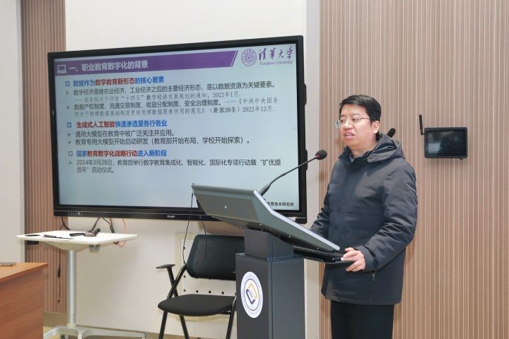近日,學(xué)校干部教師素質(zhì)能力提升培訓(xùn)會(huì)在B112會(huì)議室召開,校長(zhǎng)段振云主持,特邀清華大學(xué)教育研究院教育技術(shù)研究所所長(zhǎng)、博士周潛教授作題為《縱深推進(jìn)職業(yè)教育數(shù)字化戰(zhàn)略行動(dòng)》的專題培訓(xùn)。