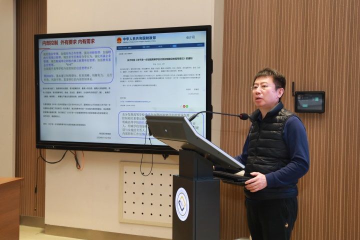 會(huì)議特別邀請(qǐng)中國(guó)內(nèi)部控制研究中心研究員、行政事業(yè)單位內(nèi)控研究所所長(zhǎng)吉津海作專題培訓(xùn)。吉津海深入解讀學(xué)校內(nèi)控由建設(shè)轉(zhuǎn)運(yùn)行的重大意義,并為學(xué)校內(nèi)控由建設(shè)轉(zhuǎn)落地實(shí)施的流程提供了專業(yè)指導(dǎo)。