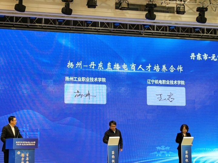 近日,揚州市丹東商會成立大會暨丹東市-元寶區(qū)招商推介會在江蘇省揚州市揚州迎賓館隆重舉行。遼寧機電職業(yè)技術(shù)學(xué)院副校長王巖與丹東市政府、丹東市企業(yè)代表共話區(qū)域經(jīng)濟合作新機遇,并于活動期間代表我校與揚州工業(yè)職業(yè)技術(shù)學(xué)院簽署《電商直播人才培養(yǎng)合作協(xié)議》。