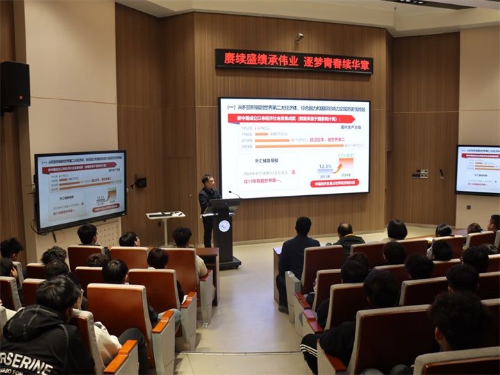 本次思政課在我們黨團(tuán)結(jié)帶領(lǐng)全國(guó)各族人民繪就的波瀾壯闊的歷史畫(huà)卷中開(kāi)始。段振云首先全面梳理了新中國(guó)成立以來(lái)取得的偉大成就,并系統(tǒng)總結(jié)了新中國(guó)成立以來(lái)偉大成就的五個(gè)必須的重大啟示。講授中,段振云勉勵(lì)同學(xué)們要踐行“厚德篤行”的校訓(xùn)精神,一是要保持學(xué)習(xí)熱情,多讀有字之書(shū)。不能滿足于碎片化信息、快餐化知識(shí),從前人的智慧結(jié)晶中加強(qiáng)專業(yè)技術(shù)學(xué)習(xí)、增強(qiáng)實(shí)踐操作本領(lǐng);二是要擴(kuò)大知識(shí)半徑,多讀無(wú)字之書(shū)。積極參加各類社會(huì)實(shí)踐與技能大賽,催生更多創(chuàng)新之花創(chuàng)造之果,從實(shí)踐中探索新途徑、找尋新方法。