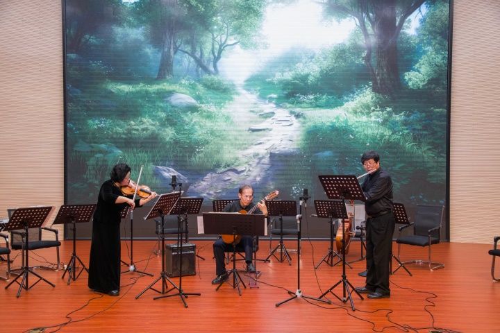 音樂會在全場熱烈的掌聲中拉開帷幕。音樂會精心挑選了 16 首兼具紅色主題與民族風格的作品,演出團隊以專業(yè)精湛的藝術(shù)演繹,搭配多元經(jīng)典的曲目選段,為全校師生帶來了一場沉浸式的視聽盛宴。