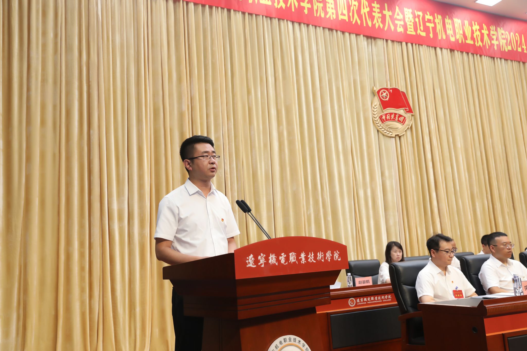 學(xué)校團(tuán)委書記宋錦韜代表共青團(tuán)遼寧機(jī)電職業(yè)技術(shù)學(xué)院第四屆委員會向大會作了題為《立德樹人守初心 逐夢篤行綻芳華用理想領(lǐng)航、以奮斗為筆書寫青春答卷,爭做挺膺擔(dān)當(dāng)?shù)臋C(jī)電學(xué)子》的工作報告。報告全面回顧和總結(jié)了我校第三次團(tuán)代會以來學(xué)院共青團(tuán)工作所取得的成績和經(jīng)驗(yàn),客觀分析了新時代共青團(tuán)事業(yè)發(fā)展的新特點(diǎn)和新要求,并從強(qiáng)化思想引領(lǐng)、深化社會實(shí)踐、加強(qiáng)社團(tuán)建設(shè)、加強(qiáng)自身建設(shè)四方面明確了共青團(tuán)今后的任務(wù)。同時,宋錦韜作為代表提出遼寧機(jī)電職業(yè)技術(shù)學(xué)院2024-2025學(xué)年學(xué)生會委員會主席團(tuán)成員。