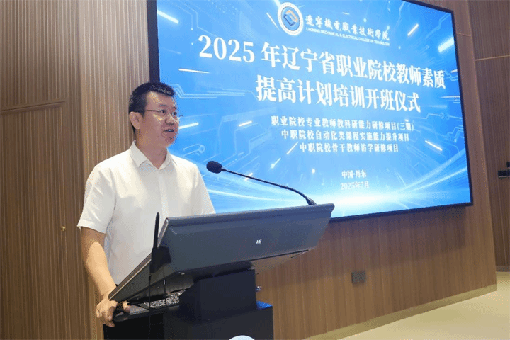 7月7日,2025年遼寧省職業(yè)院校教師素質提高計劃“職業(yè)院校專業(yè)教師教科研能力研修、中職院校自動化類課程實施能力提升、中職院校骨干教師訪學研修”三個項目開班儀式在我校舉行,來自省內近百名職業(yè)院校骨干教師參加會議。副校長王俊出席開班式并講話,儀式由培訓學院院長趙東明主持。