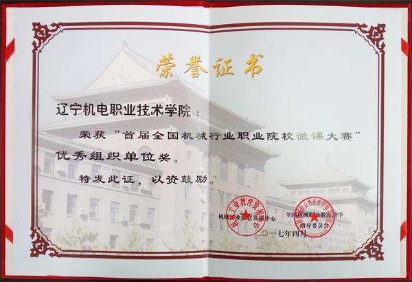 2017年4月9日,由全國機械職業(yè)教育教學(xué)指導(dǎo)委員會和機械工業(yè)教育發(fā)展中心聯(lián)合主辦的首屆全國機械行業(yè)職業(yè)院校微課大賽于江蘇常州落下帷幕。本次大賽共收到來自全國各職業(yè)院校近千名教師的近千件作品。經(jīng)過網(wǎng)上評選、專家評審、決賽答辯等環(huán)節(jié),最終評選出高職組一等獎作品58件。在眾多參賽作品中,我院報送的15件作品全部獲獎,我院教師共獲得一等獎5項、二等獎5項、三等獎5項,網(wǎng)絡(luò)人氣獎1項,學(xué)校榮獲優(yōu)秀組織獎。