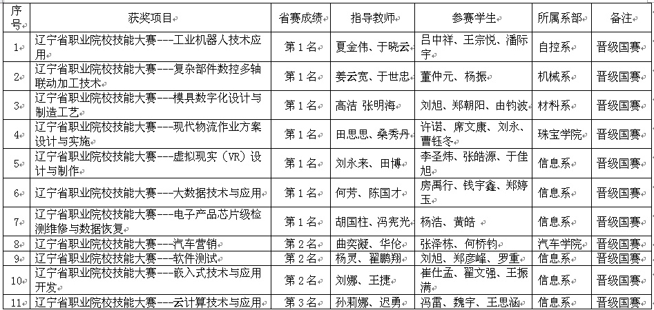 我院參賽隊(duì)獲大賽一、二、三名情況一覽表: