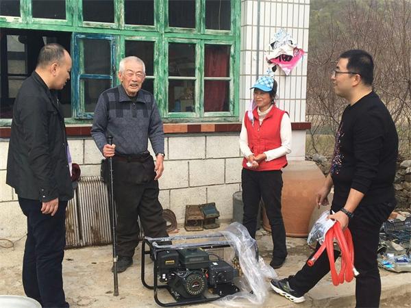扶貧隊把大型農(nóng)藥噴灑機送到殘疾老人任福珍老人家中