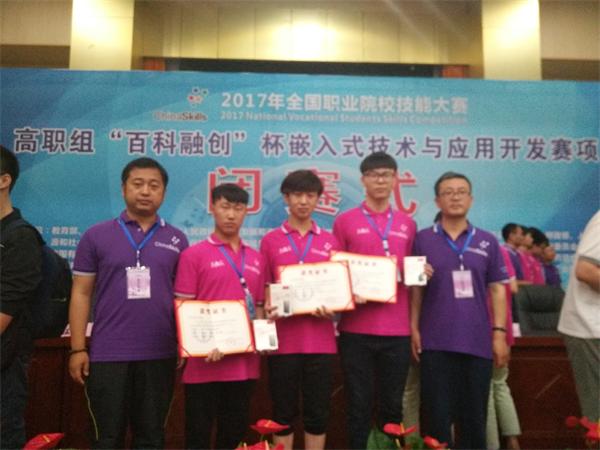 我院信息工程系嵌入式技術(shù)與應(yīng)用專業(yè)指導(dǎo)教師鄒士喜、龐春輝、劉娜、王捷帶領(lǐng)15571班崔仕孟、翟文強、王振滿參加了此次競賽,同時也是代表遼寧省參加此次國家大賽。針對此次國賽,指導(dǎo)教師認真分析賽況,解讀規(guī)程、模擬訓(xùn)練,犧牲所有的休息時間,選手們精心備賽,刻苦學(xué)習(xí),經(jīng)過12個小時的努力拼搏,在此次大賽中榮獲了團體三等獎,充分展示了我院學(xué)生在嵌入式產(chǎn)品開發(fā)與應(yīng)用等方面的專業(yè)技能,展現(xiàn)了我院師生的自信與風(fēng)采。