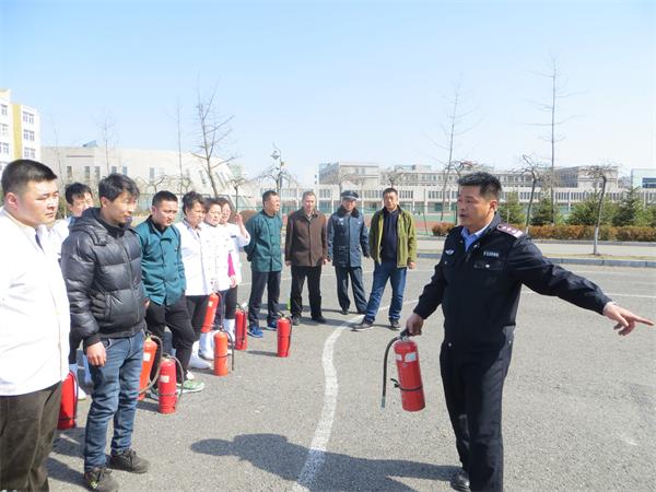 在安保部消防干事楊延濤的講解和指導下,參演人員進行了干粉滅火器實地滅火演練。