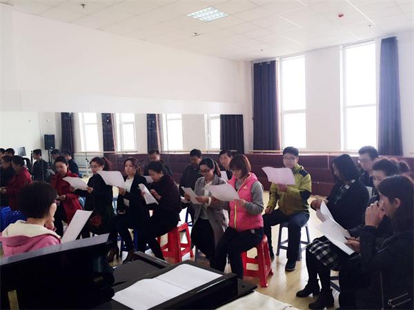 教工合唱興趣班學員們跟著團委于德媛老師練習合唱
